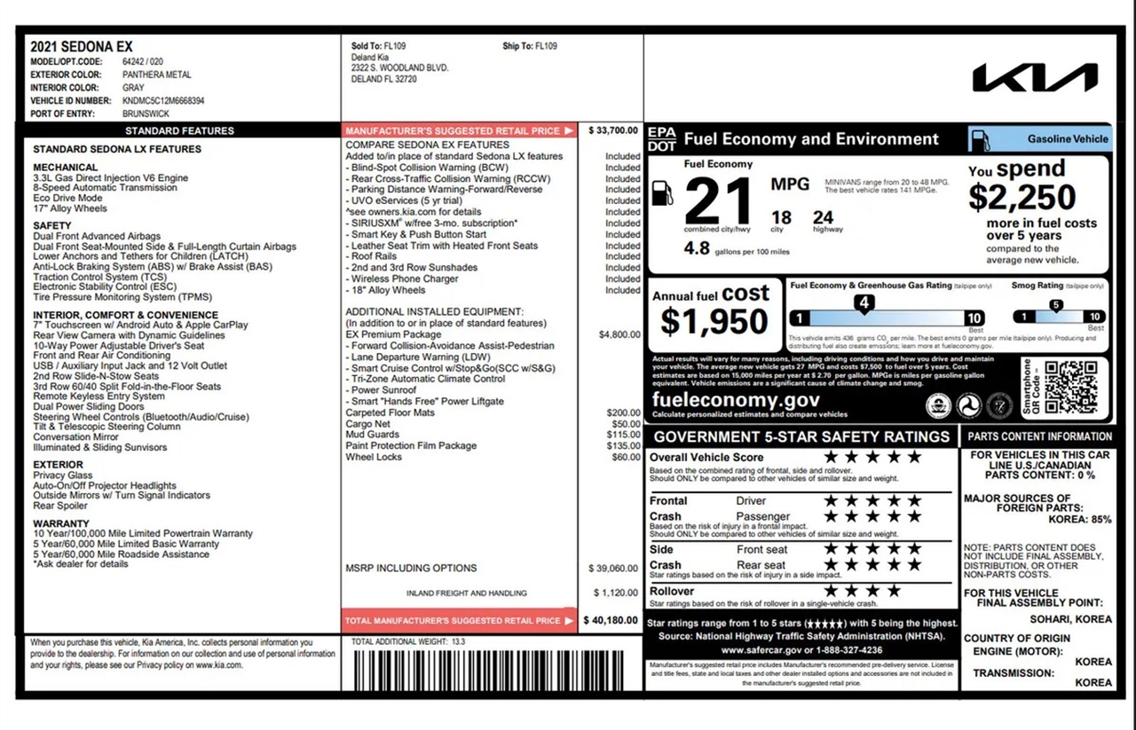 Vehicle Inquiry for 2021 Kia Sedona EX Minivan 4D
